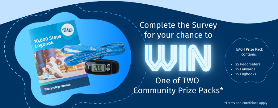- To be eligible to win, participants MUST: be a coordinator registered on the 10,000 Steps Website; be located in Queensland; and have completed the entire survey.