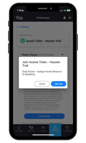 This will put you into the Challenge, which typically starts at midnight AEST on the first of the month. If you missed joining early, that's fine! You can join at any time during the month, you will just need to update your steps after joining.